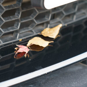 落ち葉が路面に絨毯のように敷き詰められており、ミラーを見ると舞い上がっていくのが見える。
