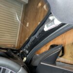 ドラレコ本体の設置が完了したので、内装をもとに戻します。コードはきれいに束ねて結束バンドで固定。振動で音がならないようしっかり固定します。
